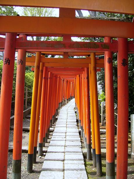 人ひとり通れるくらいの道に、赤い小さな鳥居がいくつも!